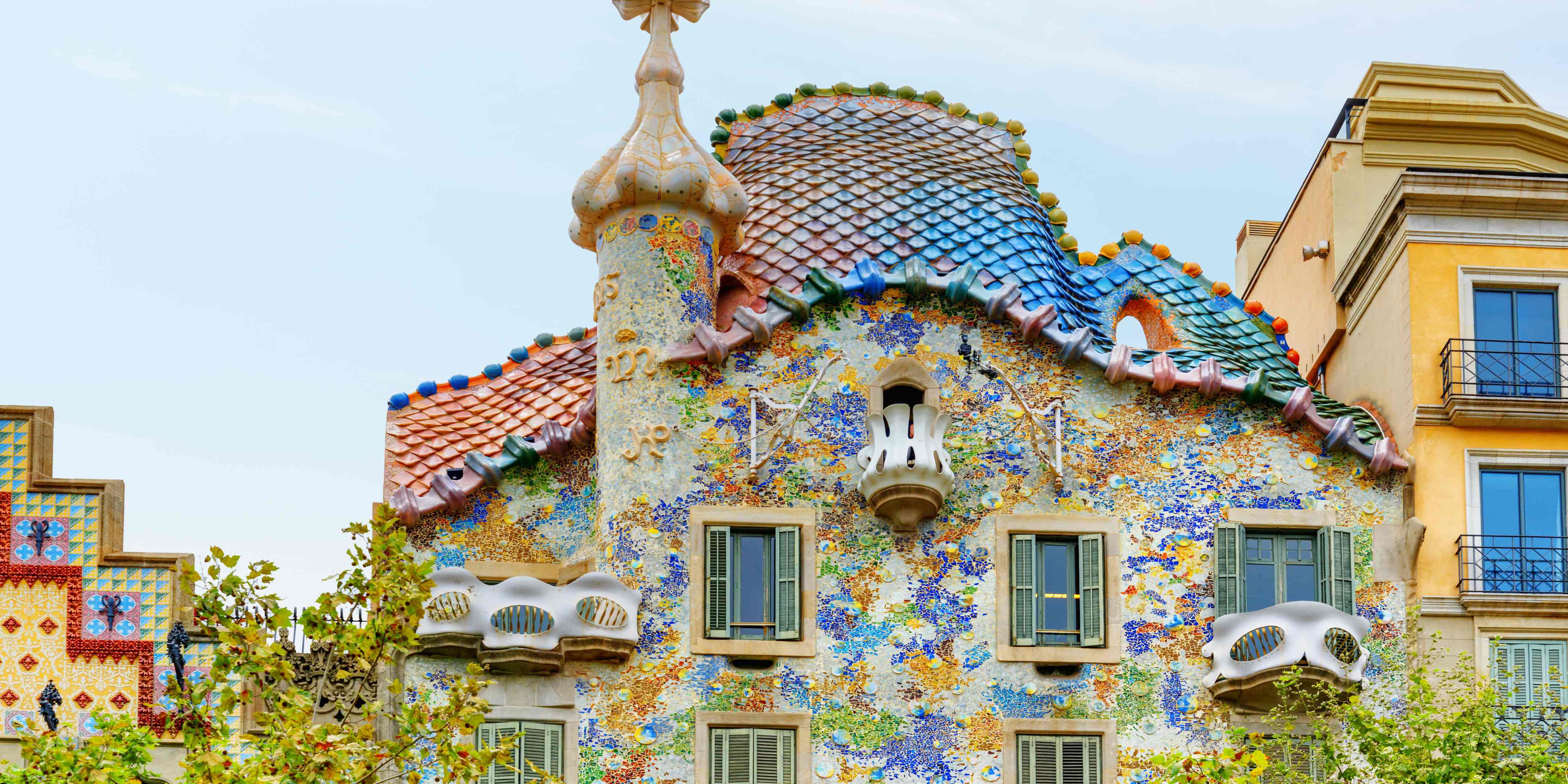 Casa Batllo: Ten wyjątkowy dom w centrum Barcelony jest świadectwem genialności Gaudiego. Znany rownież jako "Dom Kostek", charakteryzuje się falującą fasadą, oknami w kształcie czaszek i kolorowymi dachówkami przypominającymi łuski smoka.