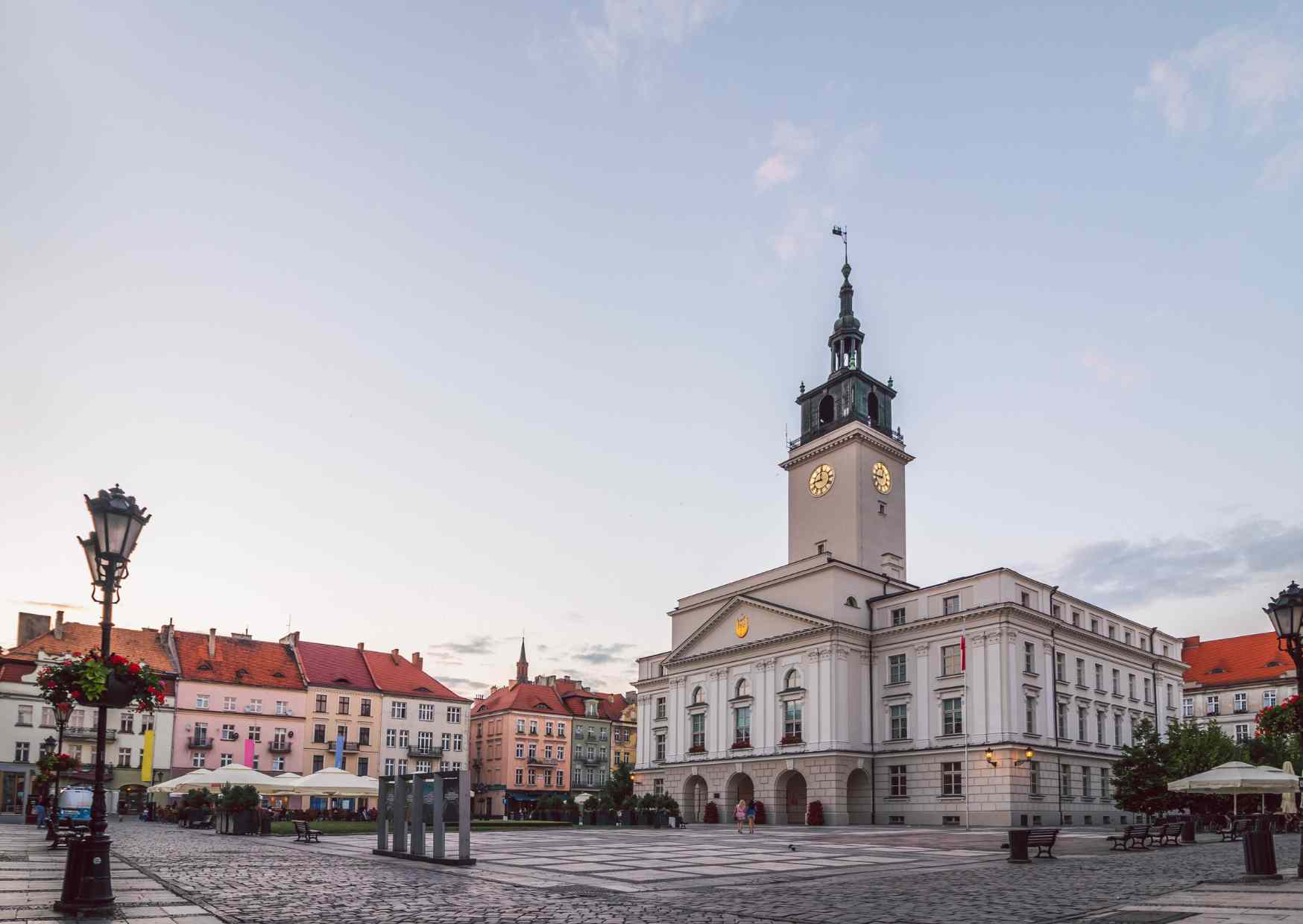 Główny Rynek w Kaliszu to tętniące życiem serce miasta, gdzie historia spotyka się z nowoczesnością. Centralnym punktem jest neoklasycystyczny ratusz, którego wieża stanowi doskonały punkt widokowy, oferując panoramę miasta. Choć pierwotny ratusz spłonął w XIX wieku, obecny budynek wiernie oddaje dawny charakter miejsca.