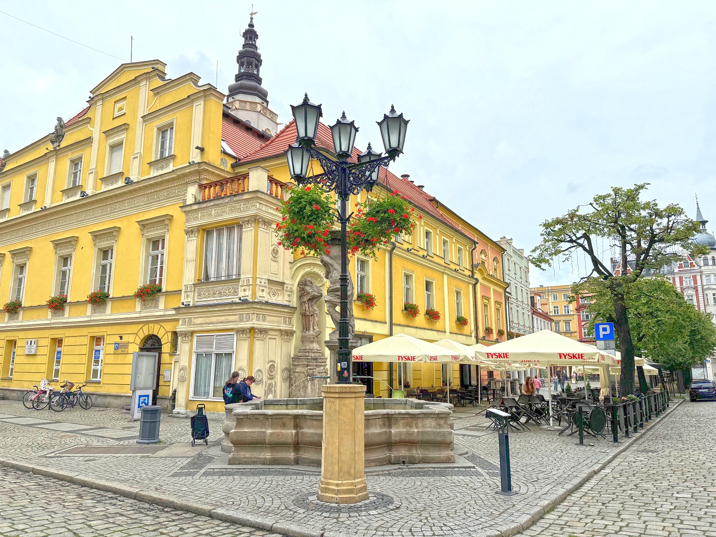 Naszą wycieczkę rozpoczniemy w Rynku, gdzie znajduje się Informacja Turystyczna, w której można otrzymać wiele publikacji dotyczących miasta i okolicy. Tuż obok niej znajduje się Wieża Ratuszowa. Jest to już czwarta konstrukcja stojąca w tym miejscu, trzy poprzednie ulegały zniszczeniu na przestrzeni ostatnich siedmiu wieków. Obecna konstrukcja spełnia rolę wieży widokowej, skąd roztacza się wspaniały widok na panoramę miasta oraz nieodległe pasma górskie. Przechadzając się po Rynku, dostrzeżemy misternie odrestaurowane kamieniczki oraz przepiękne fontanny, które nadają tej zabytkowej tkance dodatkowego kolorytu.