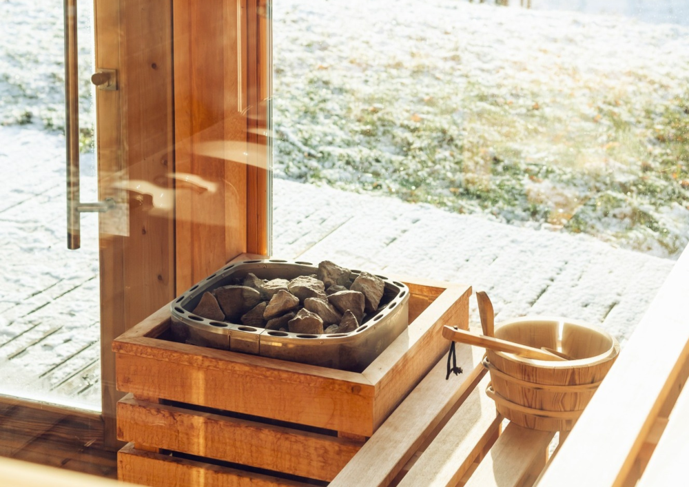 Strefa wellness z sauną i jacuzzi z widokiem na park