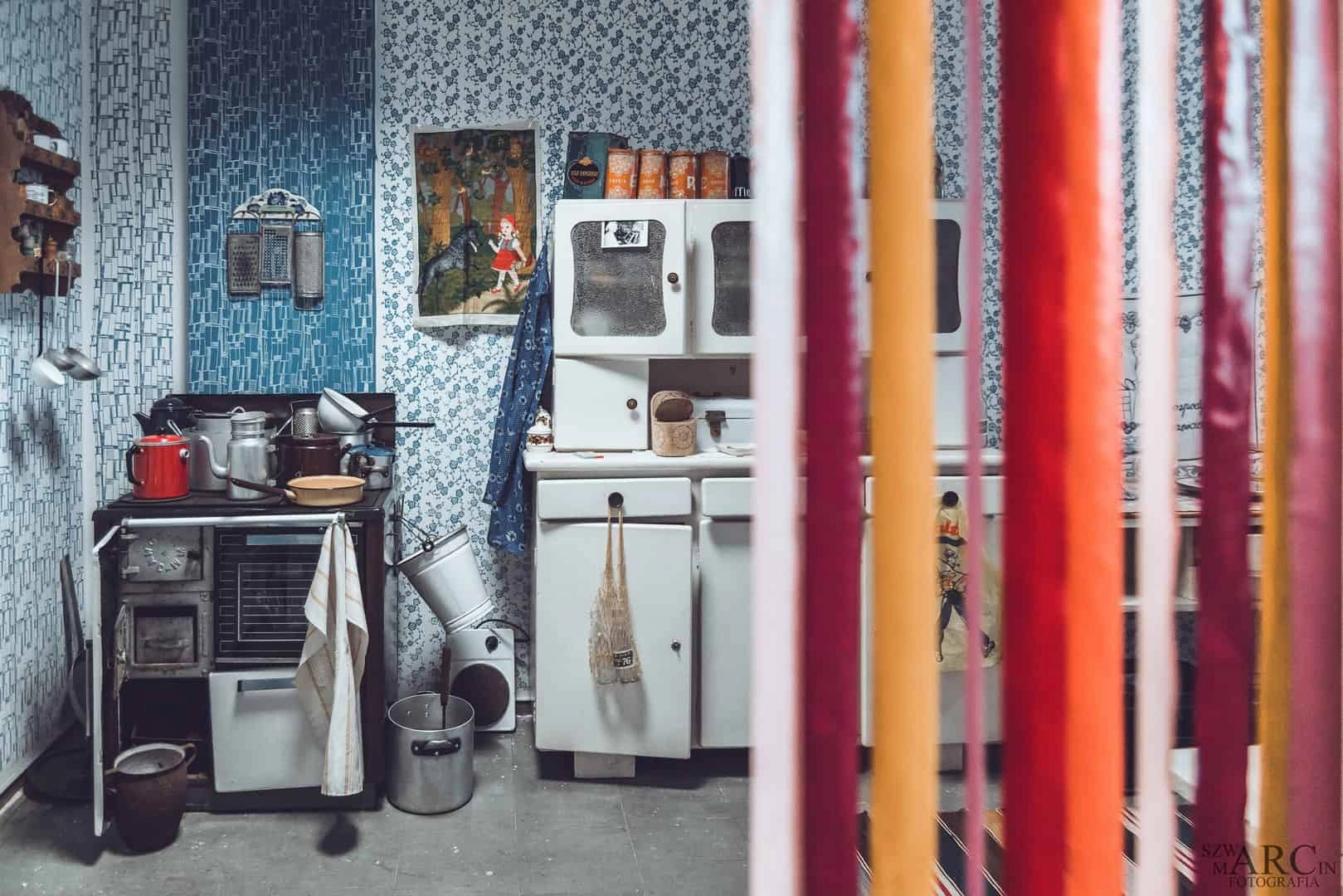 W specjalnie zaaranżowanych pokojach odwiedzicie Pokój dziadków, kuchnię babci, salon rodziców, a także tajemniczy pokój ze slajdami i koreksami - ciemnię fotograficzną.