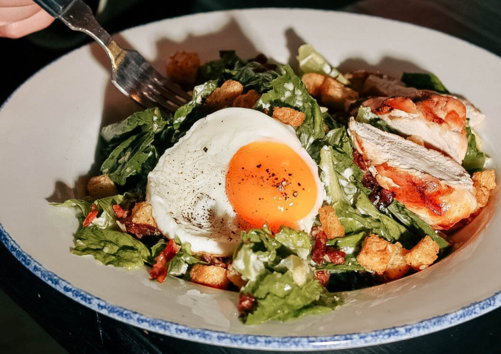 Dla tych, którzy szukają czegoś lżejszego, restauracja proponuje sałatki - od klasycznej Caesar z kurczakiem i parmezanem, przez kompozycję z szynką parmeńską i burratą, aż po świeżą sałatkę z pieczonym burakiem i ricottą.