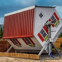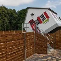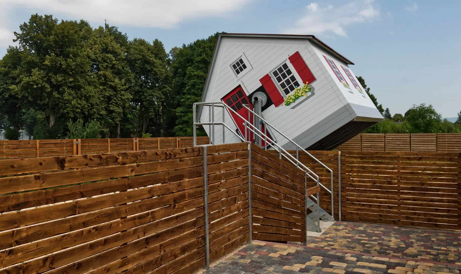 W Chacie na głowie odnajdziecie świat, który sprawia niesamowite wrażenie. Wszystko jest tu odwrócone, a do budynku wchodzi się przez okno szczytowe i spaceruje po suficie. Całość jest kompletnie wyposażona, dzięki czemu możecie poczuć, jak wyglądałoby życie, gdy wszystko dosłownie „stoi na głowie”.