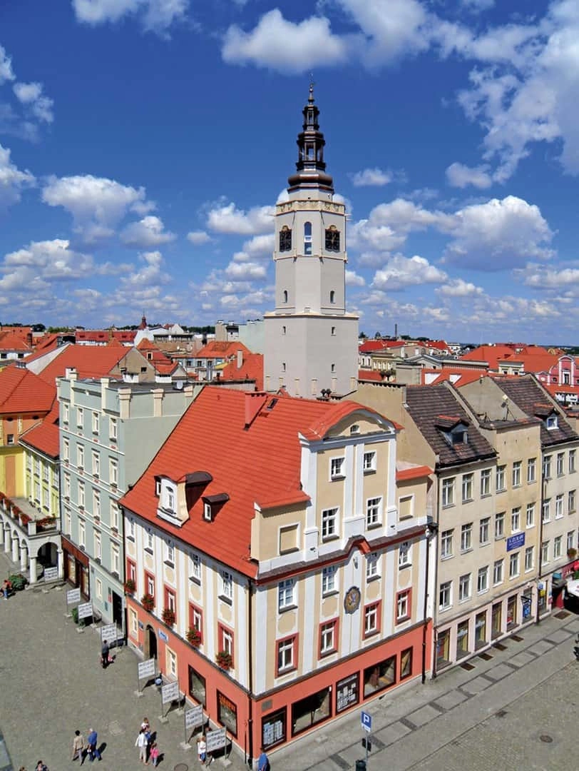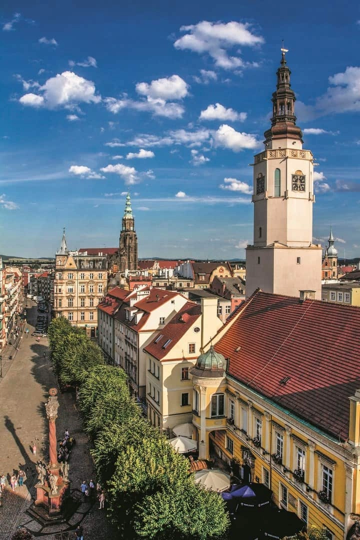 Naszą wycieczkę rozpoczniemy w Rynku, gdzie znajduje się Informacja Turystyczna, w której można otrzymać wiele publikacji dotyczących miasta i okolicy. Tuż obok niej znajduje się Wieża Ratuszowa. Jest to już czwarta konstrukcja stojąca w tym miejscu, trzy poprzednie ulegały zniszczeniu na przestrzeni ostatnich siedmiu wieków. Obecna konstrukcja spełnia rolę wieży widokowej, skąd roztacza się wspaniały widok na panoramę miasta oraz nieodległe pasma górskie. Przechadzając się po Rynku, dostrzeżemy misternie odrestaurowane kamieniczki oraz przepiękne fontanny, które nadają tej zabytkowej tkance dodatkowego kolorytu.