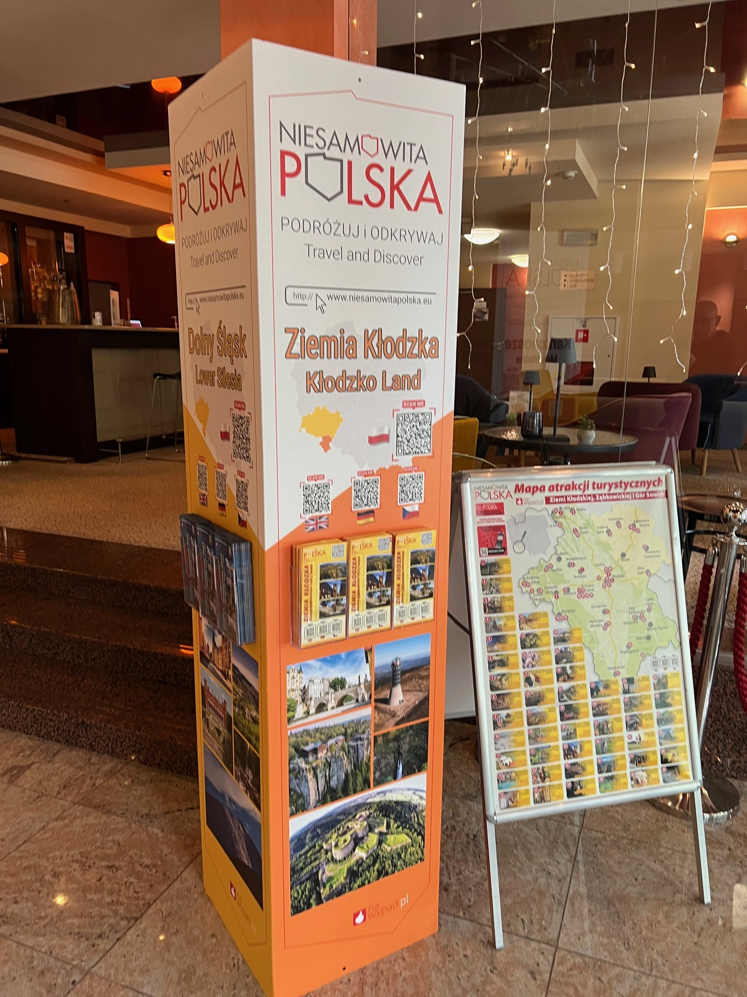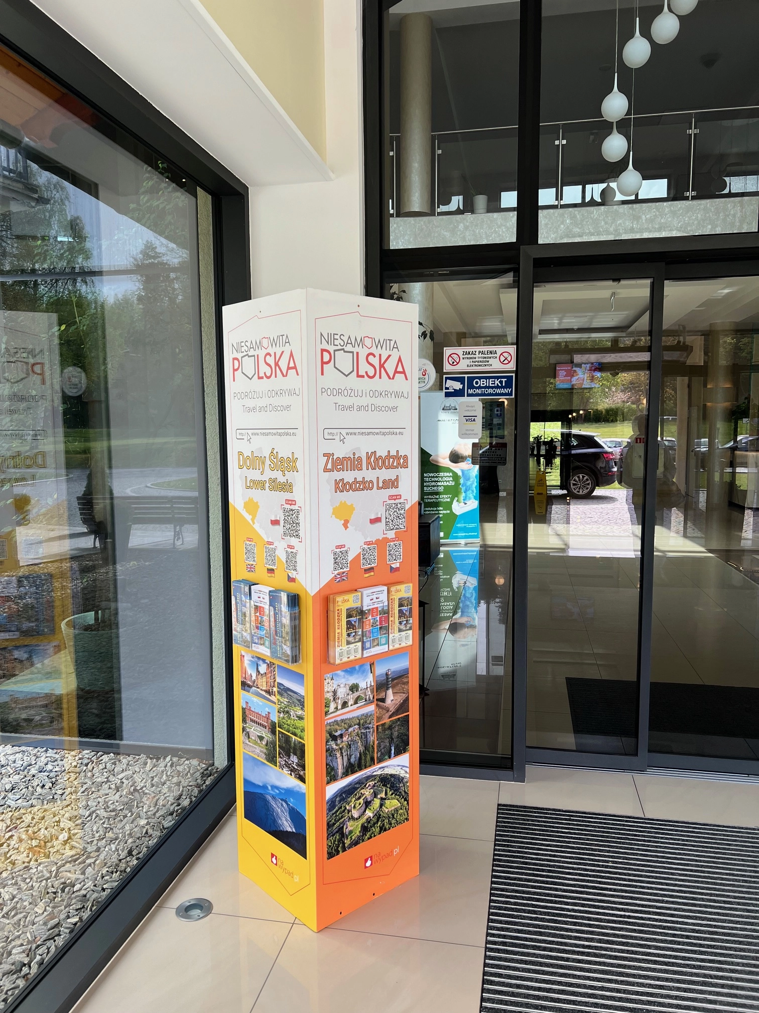 Wiele hoteli w całej Polsce oferuje nasze materiały turystyczne w swoich recepcjach czy pokojach gościnnych. Są one dostępne dla gości poszukujących informacji na temat lokalnych atrakcji, najlepszych restauracji, czy też sposobów spędzania wolnego czasu. Hotele starają się zapewnić swoim gościom jak największy komfort, dlatego często decydują się na umieszczenie naszych ekspozytorów w widocznych i dostępnych miejscach, takich jak lobby czy strefy wypoczynkowe.